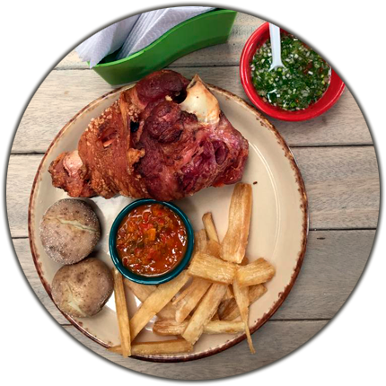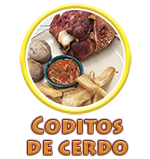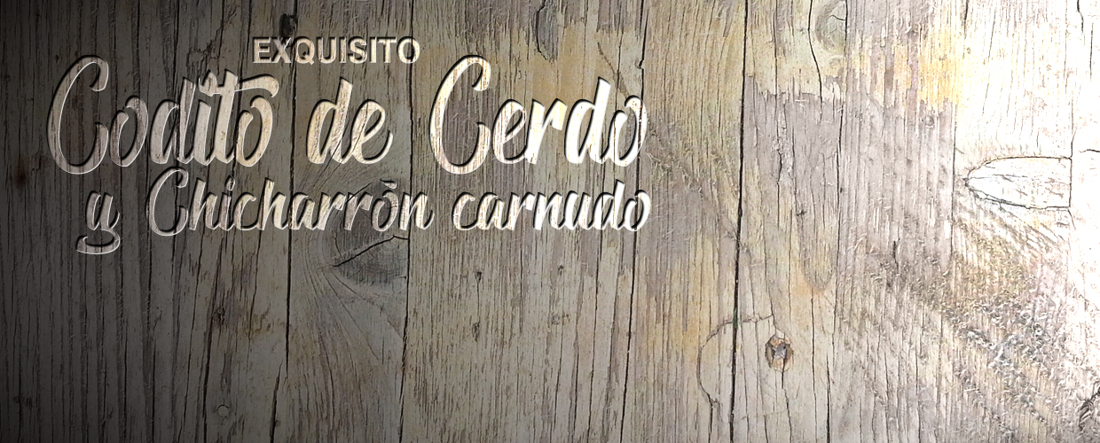 Disfrute con su familia los más deliciosas Coditos de Cerdo, ahumados, horneados, doraditos y crocantes por fuera y tiernos por dentro; acompañados de yuca, papa y hogao, pruébelos troceados o enteros, en nuestros puntos de venta o pídalos para llevar, prelistos, empacados al vacío. Deléitese también con nuestro sabroso chicharrón carnudo, seleccionado, ahumado, precocido al horno y troceado; pídalo como entrada, acompañado de patacón, arepa, hogao y limón. También puede llevarlo a casa prelisto empacado al vacío. Venga con su familia y amigos.