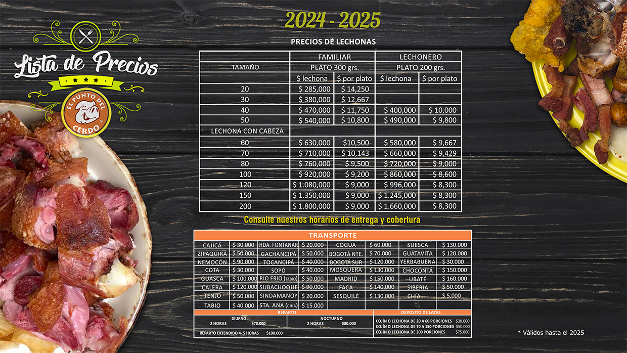 Nacimos en el año 2000 y desde entonces El Punto del Cerdo ha ido posicionándose en el paladar de propios y extranjeros como el mejor lugar para degustar la tradicional Lechona tolimense, deliciosas picadas, costillitas de cerdo, chorizos, huesos de marrano y muchas delicias más.